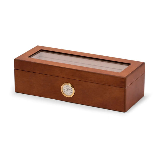 BeyBerk Watch Box - Brown Four Watch Box with Clock - CM659BRW