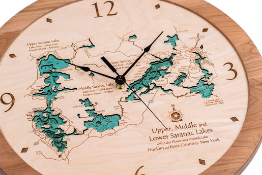 Lake Clock - Saranac Chain Lakes - Upper Middle and Lower - Custom Wooden Lake Clock - New York