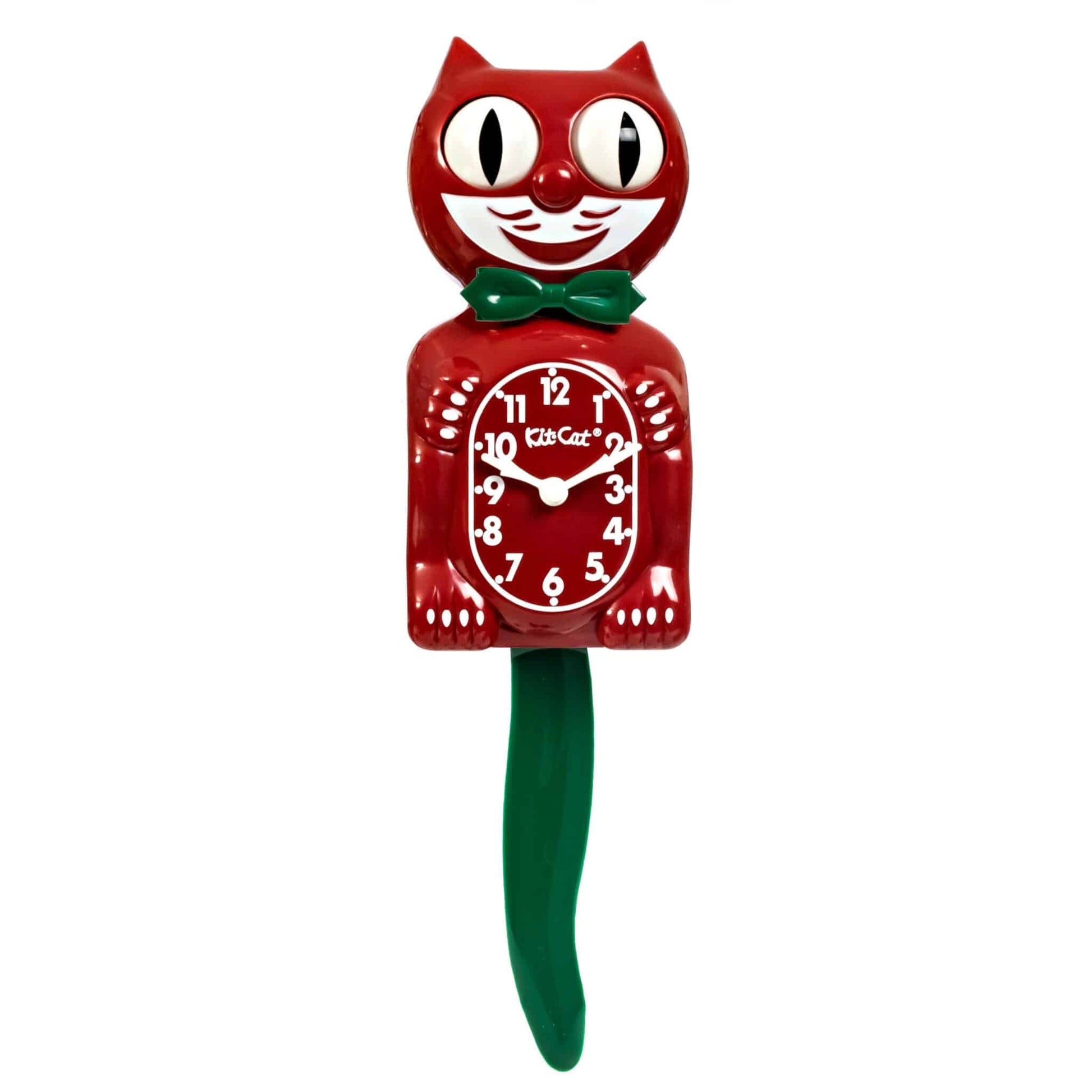 Christmas Gift Gentleman Kit-Cat Klock has a vibrant scarlet body with a striking Holiday Green Bow Tie and Tail.