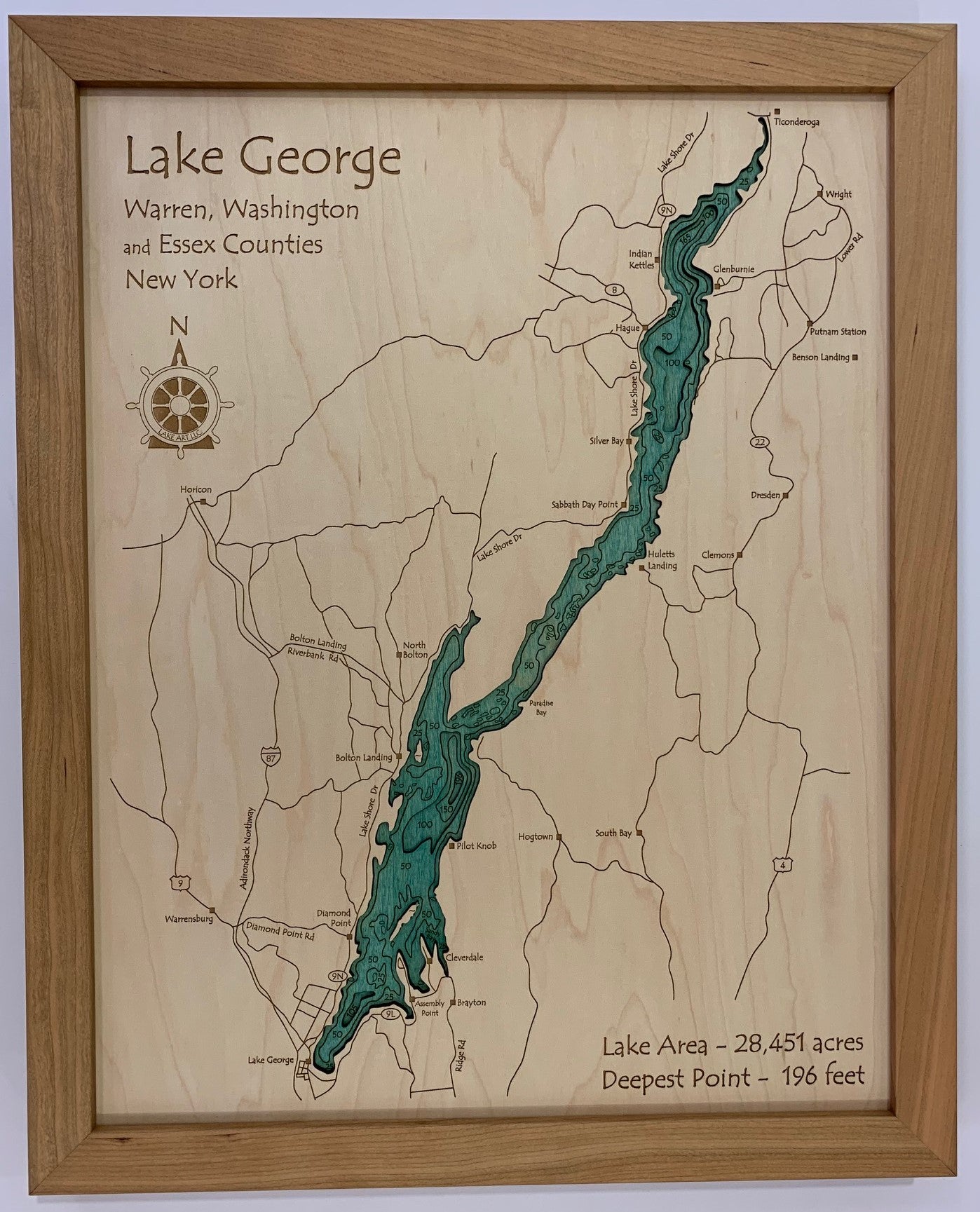 Lake Map - Lake George - Carved Wooden Relief Map - 14" x 18" - New York